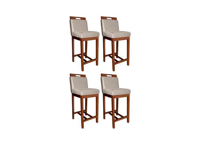 Kit 4 Banquetas Média Estofada com Encosto Veneza 94 Cm Madeira Castan
