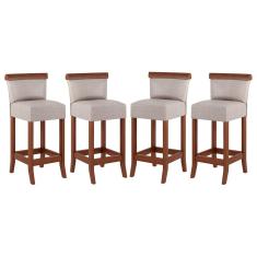 Kit 4 Banquetas Média Estofada Encosto Diamantina 36x90Cm Balcão Madeira Maciça Linho Bege M58 - RMI