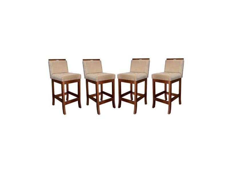 Kit 4 Banquetas Média Estofada Turim Madeira Castanho Suede Bege CCS