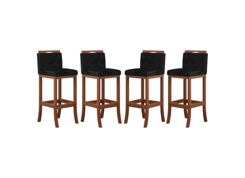 Kit 4 Banquetas Média Estofada Turim Madeira Castanho Suede CCS