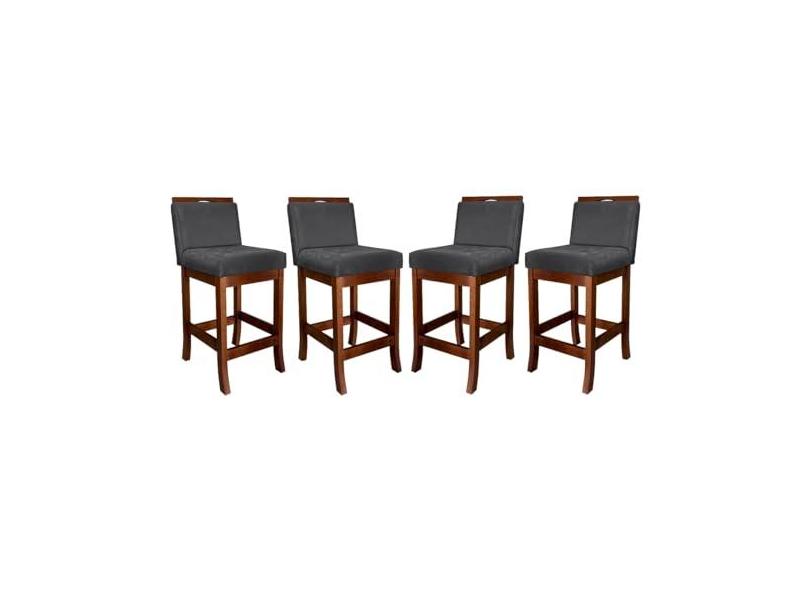 Kit 4 Banquetas Média Estofada Turim Madeira Castanho Suede Cinza CCS