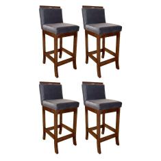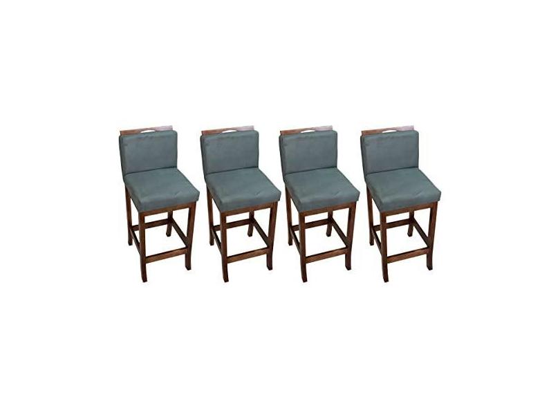 Kit 4 Banquetas Média Gourmet Estofada para Cozinha Americana Turim Madeira Maciça Suede Cinza - CCS