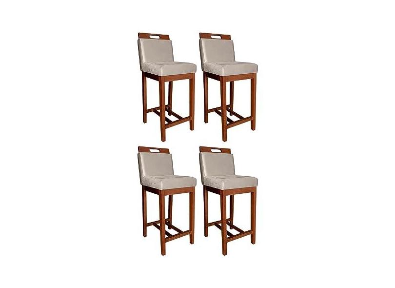Kit 4 Banquetas Média Veneza com Encosto 94 Cm Madeira Maciça Suede Bege CCS