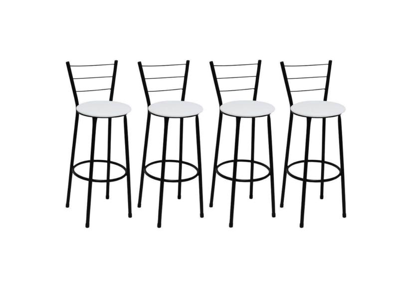 Kit 4 Banquetas Médias Preta com Encosto Assento Branco