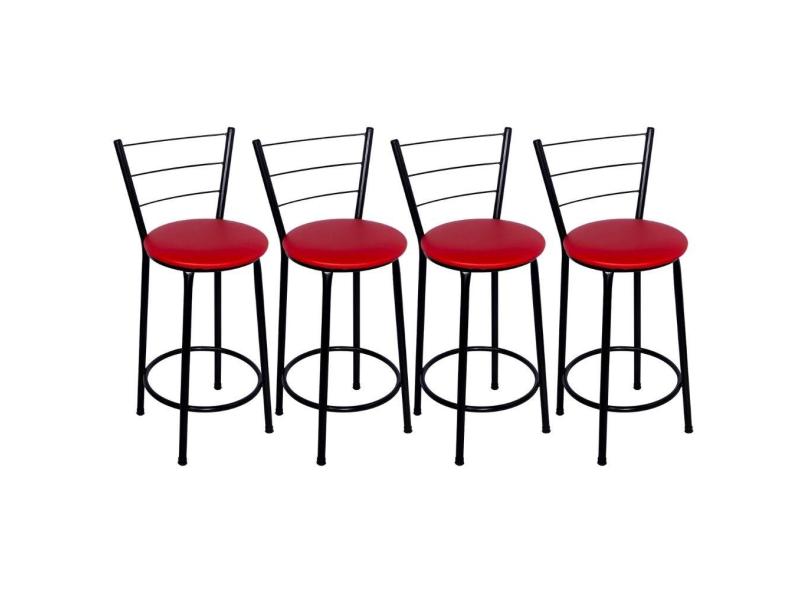 Kit 4 Banquetas Médias Preta com Encosto Assento Vermelho