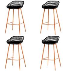 Kit 4 Banquetas Mônaco Clarice Alta Fratini 96 Cm (altura) Em Poliuretano (pu) Preto Base Em Aço