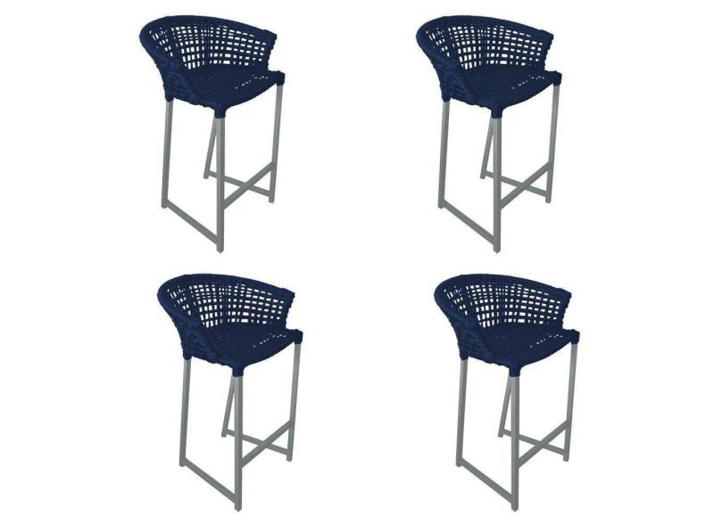 O menor preço encontrado no Brasil para Kit 4 Banquetas Reis Em Corda Náutica E Base Em Alumínio Cinza Para área Gourmet Azul Marinho Azul atualmente é R$ 2.732,77.