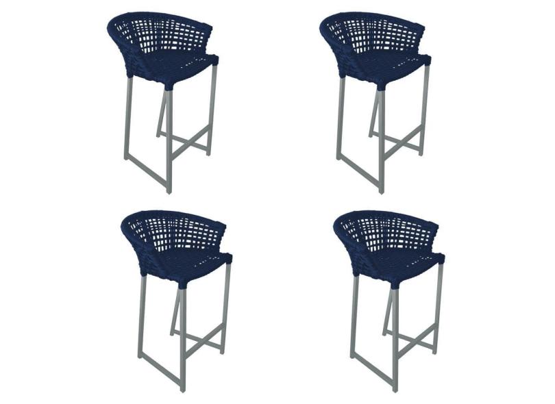 Kit 4 Banquetas Reis em Corda Náutica e Base em Alumínio Cinza para Área Gourmet Azul Marinho