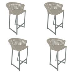 Kit 4 Banquetas Reis em Corda Náutica e Base em Alumínio Cinza para Área Gourmet - Externa Areia