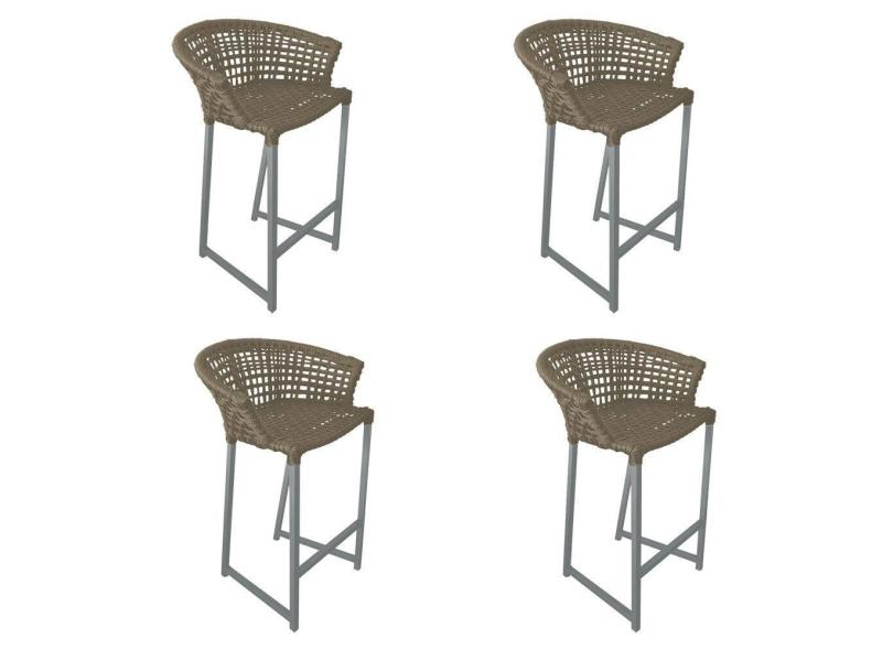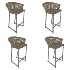 Kit 4 Banquetas Reis em Corda Náutica e Base em Alumínio Cinza para Área Gourmet - Externa Rami