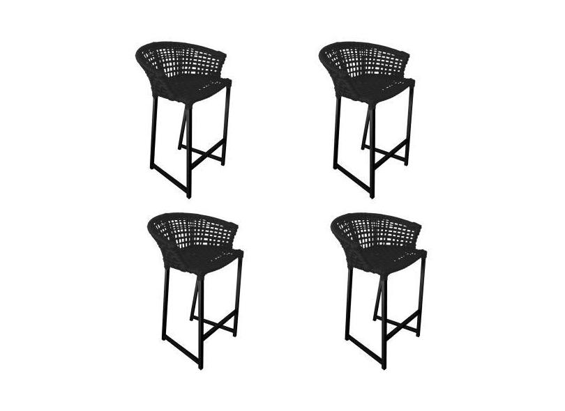 Kit 4 Banquetas Reis em Corda Náutica e Base em Alumínio Preta para Ár