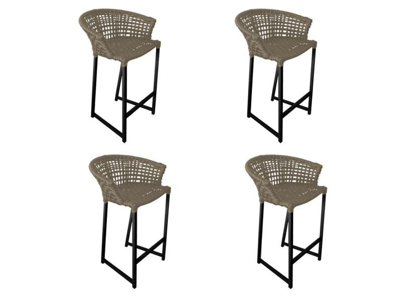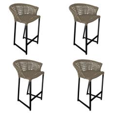 Kit 4 Banquetas Reis em Corda Náutica e Base em Alumínio Preta para Área Gourmet - Externa Rami