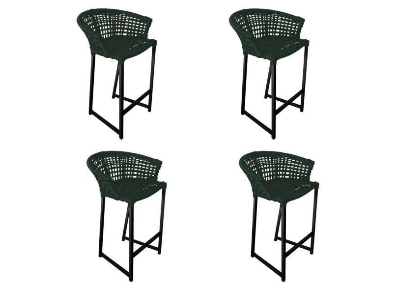 Kit 4 Banquetas Reis em Corda Náutica e Base em Alumínio Preta para Área Gourmet Verde Musgo