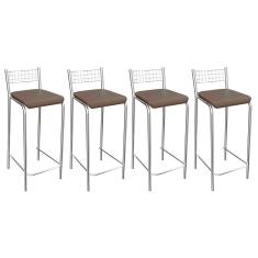 Kit 4 Banquetas Sala Jantar Gênova 1B705CR 4 Un Cromado/Courano Marrom - Kappesberg