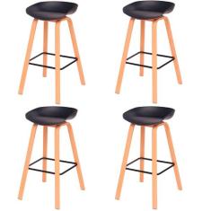 Kit 4 Banquetas Toledo Fratini 73 (altura) Revestimento Polipropileno Preto Base Em Aço E Apoio De Pé Preto