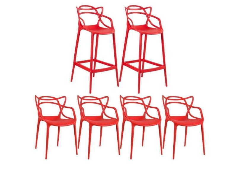 Kit 4 Cadeiras + 2 Banquetas Altas Masters Allegra Vermelho