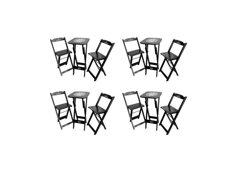 Kit 4 Conjuntos Bistrô Mesa com 2 Banquetas Dobráveis de Madeira Perso