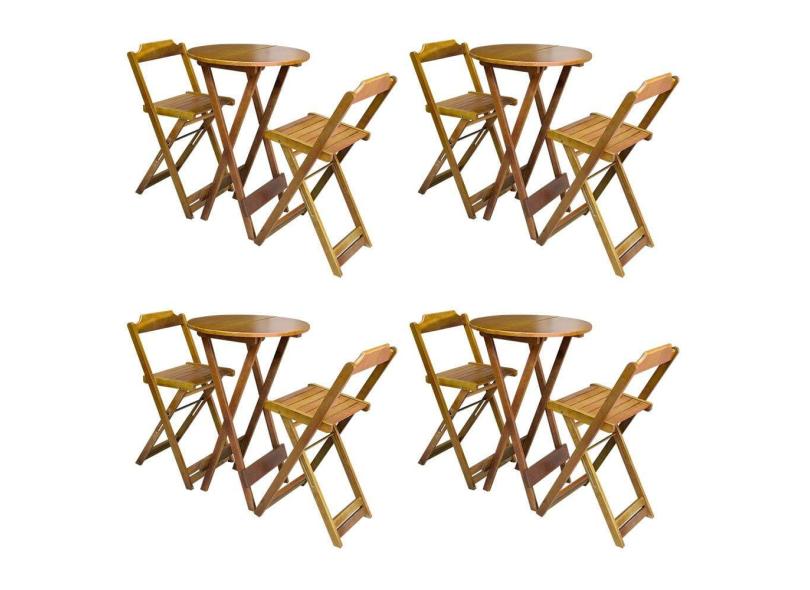 O menor preço encontrado no Brasil para Kit 4 Conjuntos de Mesa Bistrô Dobraveis em Madeira Padrão com 2 Banquetas Altas - Caramelo atualmente é R$ 1.403,01.