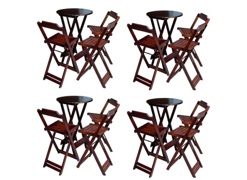 O menor preço encontrado no Brasil para Kit 4 Conjuntos De Mesa Bistrô Dobravel Em Madeira Maciça Com 3 Banquetas Altas - Imbuia - Marrom atualmente é R$ 1.956,74.