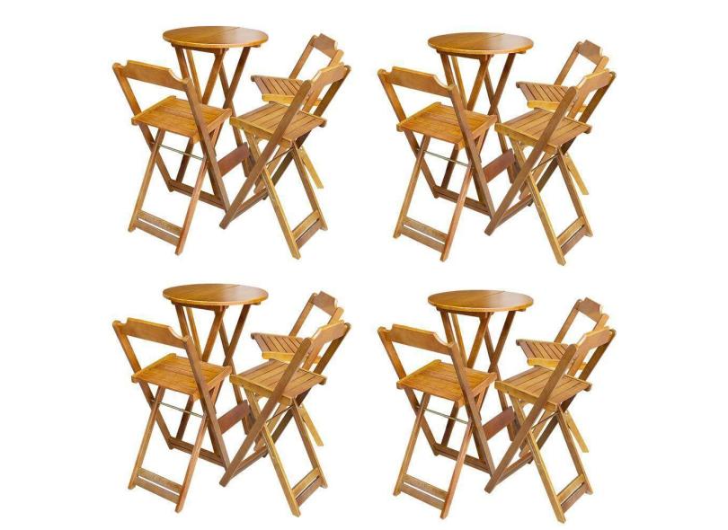 O menor preço encontrado no Brasil para Kit 4 Conjuntos De Mesa Bistrô Dobravel Em Madeira Maciça Com 3 Banquetas Altas - Mel - Marrom atualmente é R$ 1.956,74.
