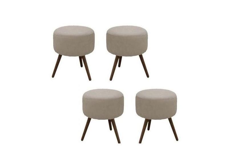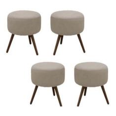 Kit 4 Puffs Decorativo Redondo Banqueta Classic Tecido Suede Bege Pés