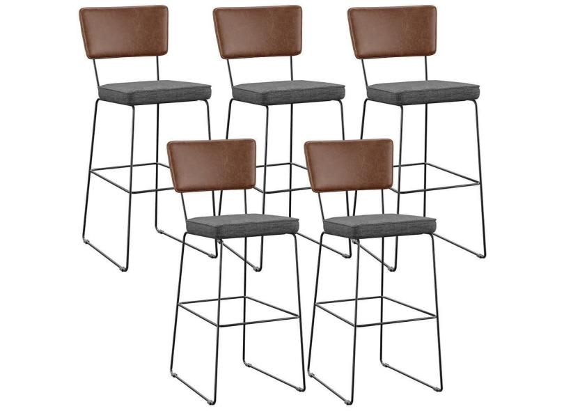Kit 5 Banqueta Alta Cozinha Allana L02 Marrom Cinza Escuro