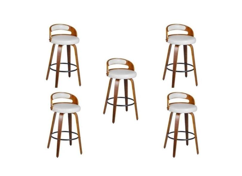 Kit 5 Banqueta para Cozinha Alta Giratória Madeira Roma Branco/Marrom