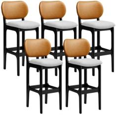 Kit 5 Banquetas Alta Bar Cozinha Jantar Betta L02 Preto Material Sinté