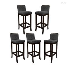 Kit 5 Banquetas Alta com Encosto Matelassê Nice Madeira Maciça Maciça Suede Cinza CCS