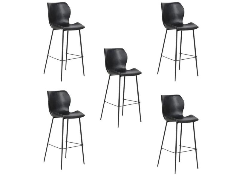 Kit 5 Banquetas Alta Com Encosto Para Bancada Cozinha Penha R02 Pu Preto - Mpozenato