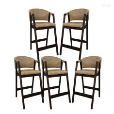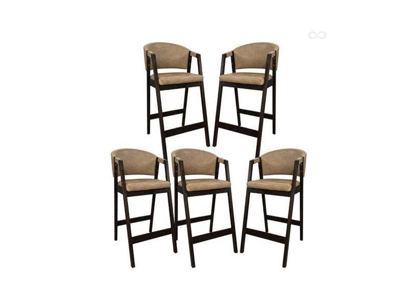 Kit 5 Banquetas Alta com Encosto Ravena Madeira Maciça Maciça Capuccino Sintético Bege CCS