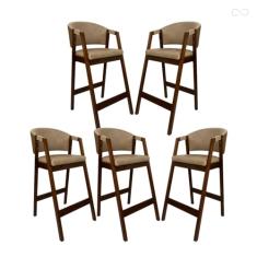 Kit 5 Banquetas Alta com Encosto Ravena Madeira Maciça Maciça Capuccino Sintético Bege Marrom CCS
