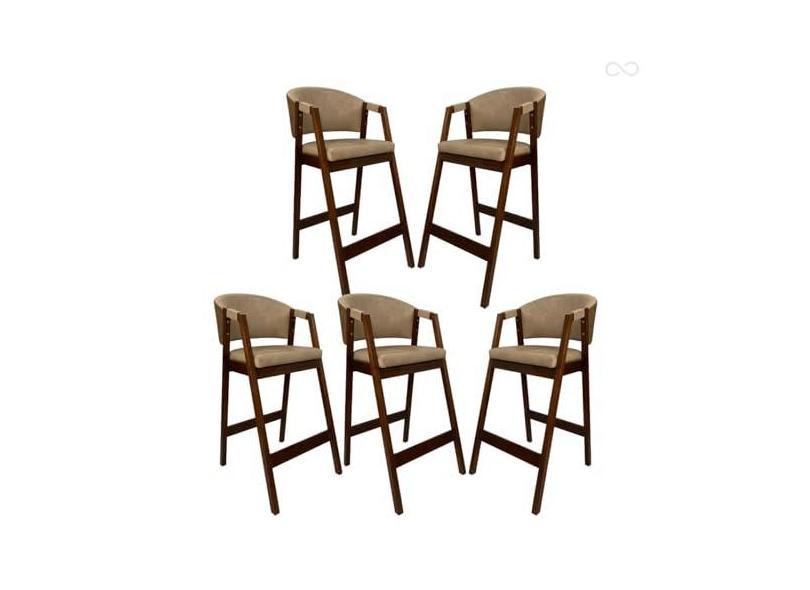 Kit 5 Banquetas Alta com Encosto Ravena Madeira Maciça Maciça Capuccino Sintético Bege Marrom CCS
