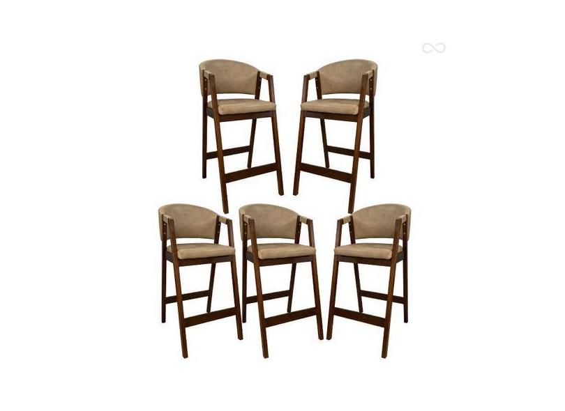 Kit 5 Banquetas Alta com Encosto Ravena Madeira Maciça Maciça Pinhão S