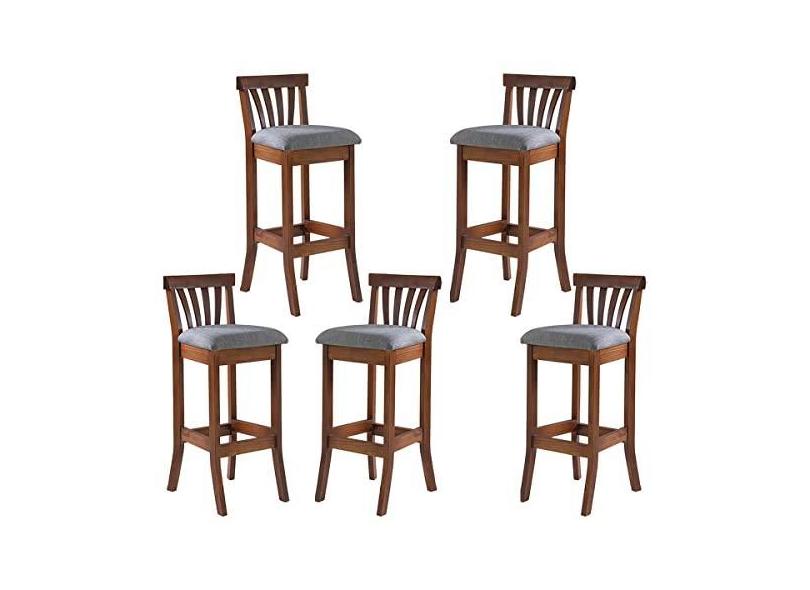 O menor preço encontrado no Brasil para Kit 5 Banquetas Alta Estofada Anthurium 36 x 100 Cm Madeira Maciça Imbuia Linho Cinza L55 - RMI atualmente é R$ 3.434,00.