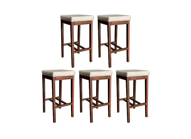 O menor preço encontrado no Brasil para Kit 5 Banquetas Alta Estofada Bali 74 Cm Madeira Maciça Suede Bege CCS atualmente é R$ 1.433,44.