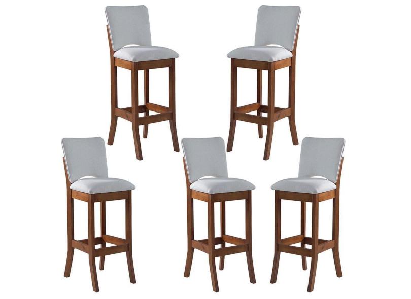 Kit 5 Banquetas Alta Estofada Bianca 38x108Cm Madeira Linho Bege Cru L71