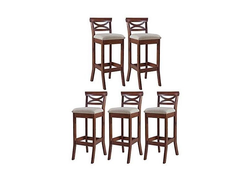 Kit 5 Banquetas Alta Estofada Copacabana 36 x 100 Cm Madeira Maciça Imbuia Linho Bege M58 - RMI