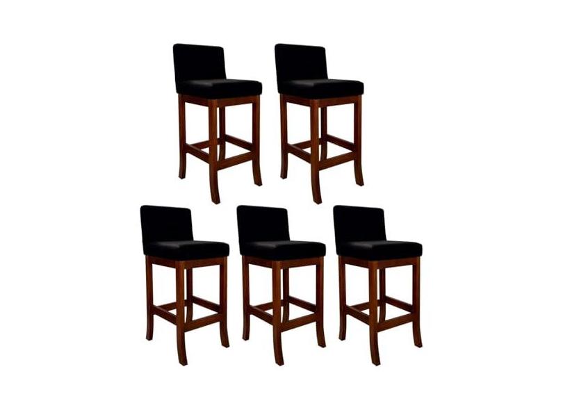 Kit 5 Banquetas Alta Estofada para Bancada Castanho Melody Suede Preto