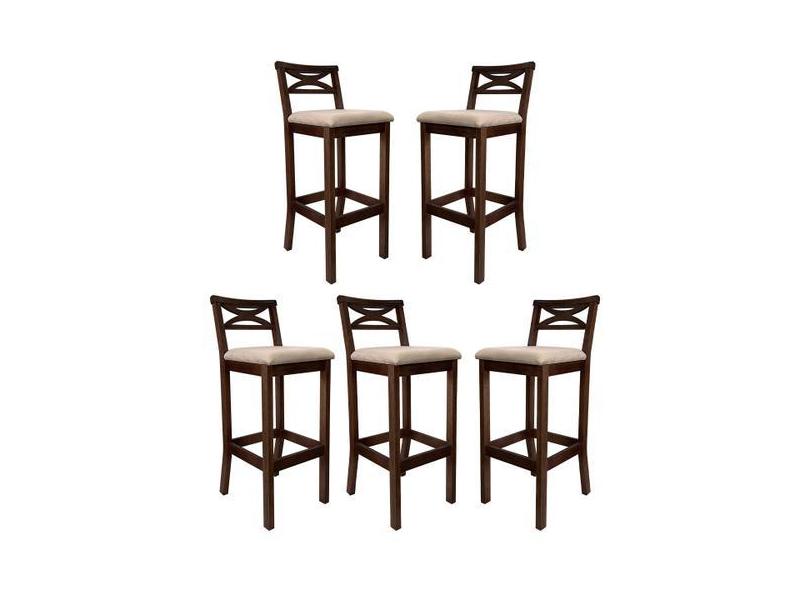 Kit 5 Banquetas Alta Estofada para Bancada Madri Madeira Capuccino Sue
