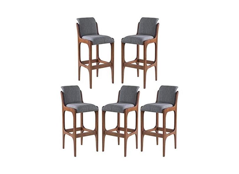 Kit 5 Banquetas Alta Irlanda 45 x 101 Cm Madeira Maciça Imbuia Linho Cinza L55 - RMI