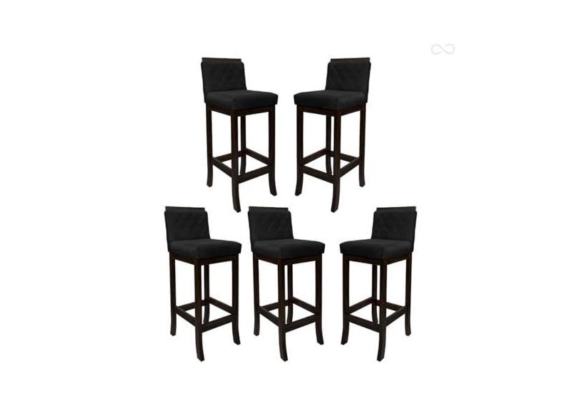 Kit 5 Banquetas Alta para Balcão de Cozinha Nice Madeira Maciça Matelassê Suede Preto CCS