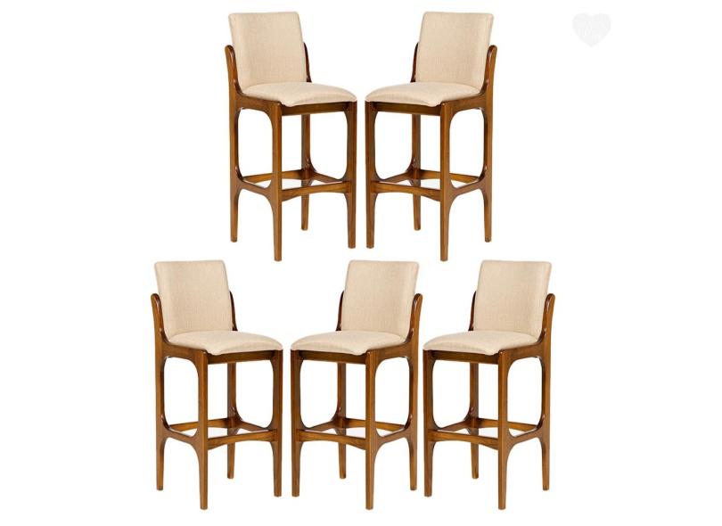 O menor preço encontrado no Brasil para Kit 5 Banquetas Alta para Balcão Lisboa Madeira Imbuia Linho Bege M58 rmi atualmente é R$ 4.936,80.