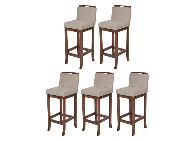 Kit 5 Banquetas Alta para Balcão Turim Madeira Capuccino Suede Bege CCS