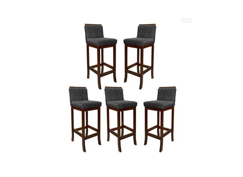 Kit 5 Banquetas Alta para Bancada de Cozinha Nice Madeira Castanho Matelassê Suede Cinza CCS
