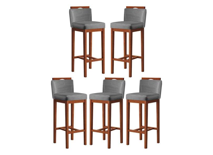 Kit 5 Banquetas Alta para Bancada Gourmet 38x102 Cm Líbia Madeira Maciça Suede Cinza CCS