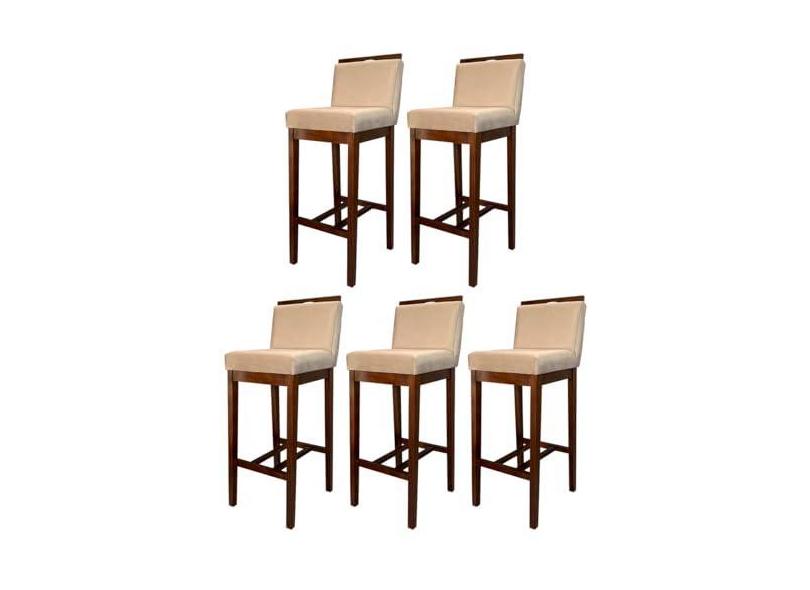 Kit 5 Banquetas Alta para Bancada Gourmet Líbia Madeira Capuccino Suede Bege CCS