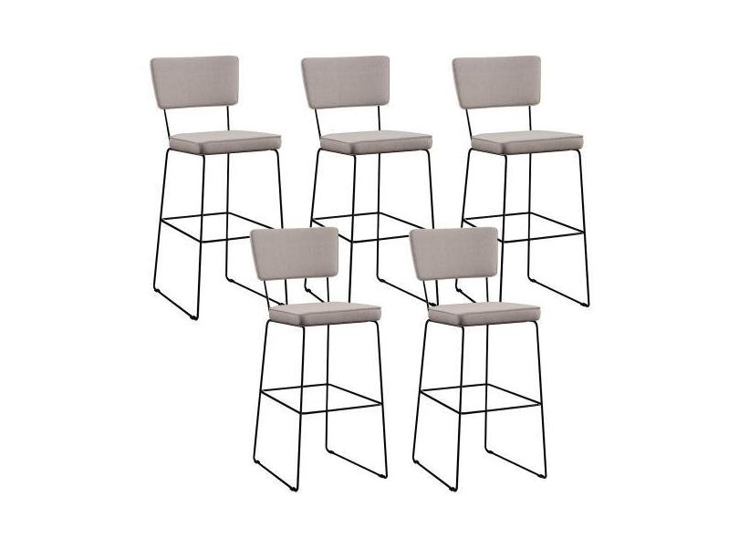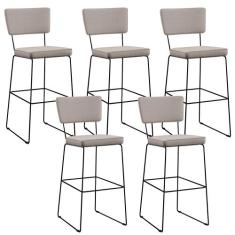 Kit 5 Banquetas Alta Para Cozinha Sala De Jantar Base em Aço Fixa Alla