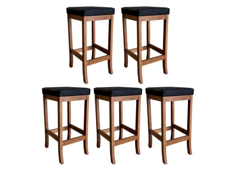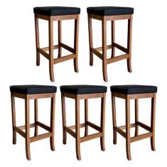 Kit 5 Banquetas Altas Estofadas Barcelona 74 Cm Madeira Maciça Suede Preto CCS