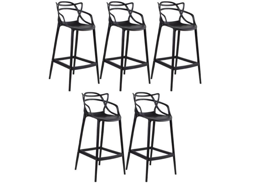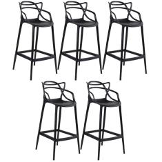 Kit 5 Banquetas Altas Masters Allegra 76 Cm Preto Preto